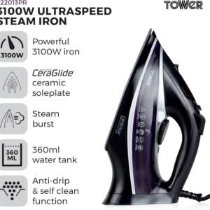 Ferro de Engomar Roupa a Vapor 3100w.Tower