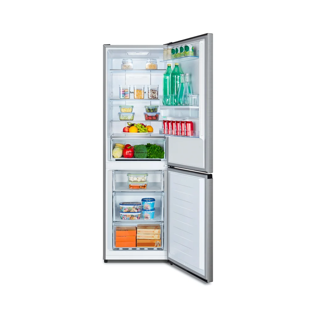 A geladeira combinada HISENSE oferece capacidade de 300 litros, com dispensador de água embutido e display de LED para uso prático. Também está equipado com tecnologia No-Frost para evitar a formação de geada, tudo em um acabamento moderno em aço inoxidável.