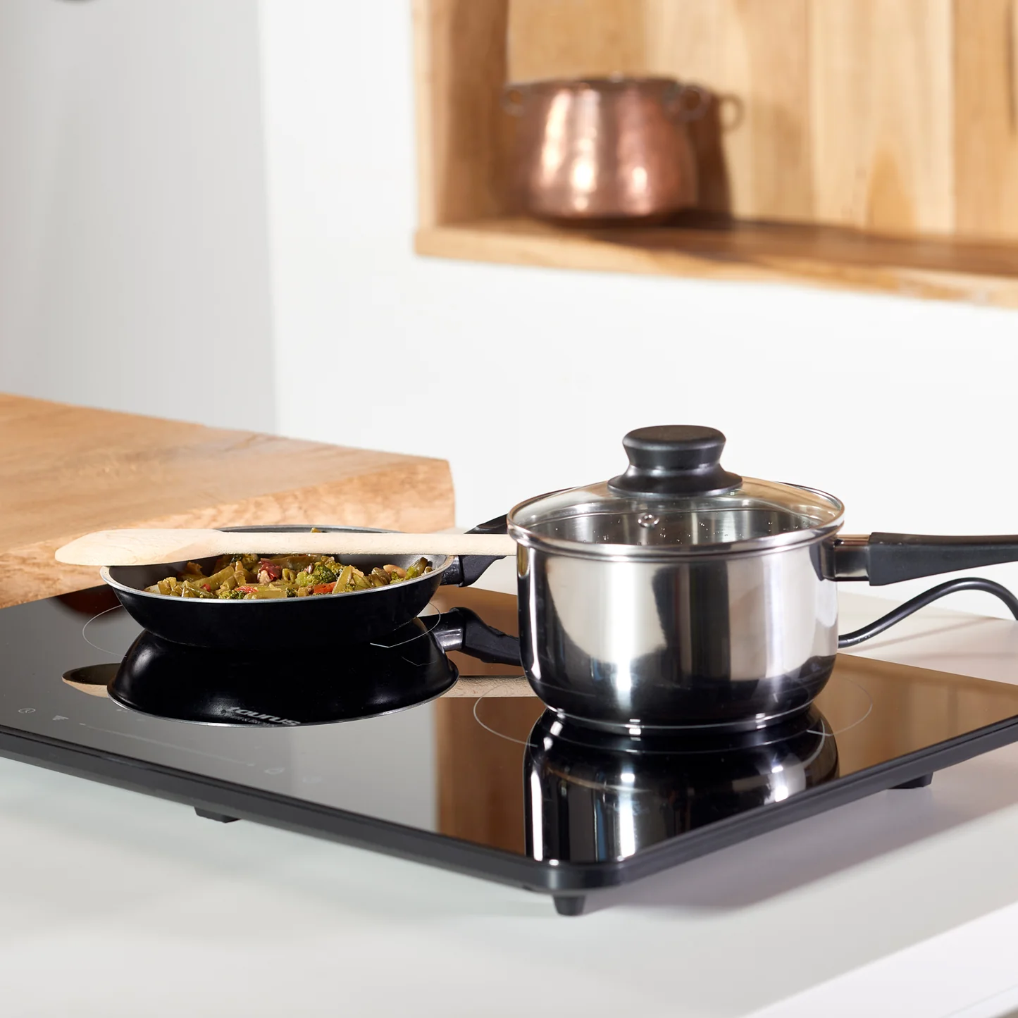 Cozinhe onde e quando quiser com o compacto e portátil fogão de indução Darkfire Double. A sua tecnologia Energy-Saving System permite um baixo consumo e uma cozedura muito mais eficaz graças ao seu método de cozedura por indução. A placa Darkfire Double tem uma superfície Ceramic Black Glass, um design de vidro preto polido altamente resistente e muito fácil de limpar. Resultados rápidos e máxima praticidade com a placa de indução dupla Taurus Darkfire.